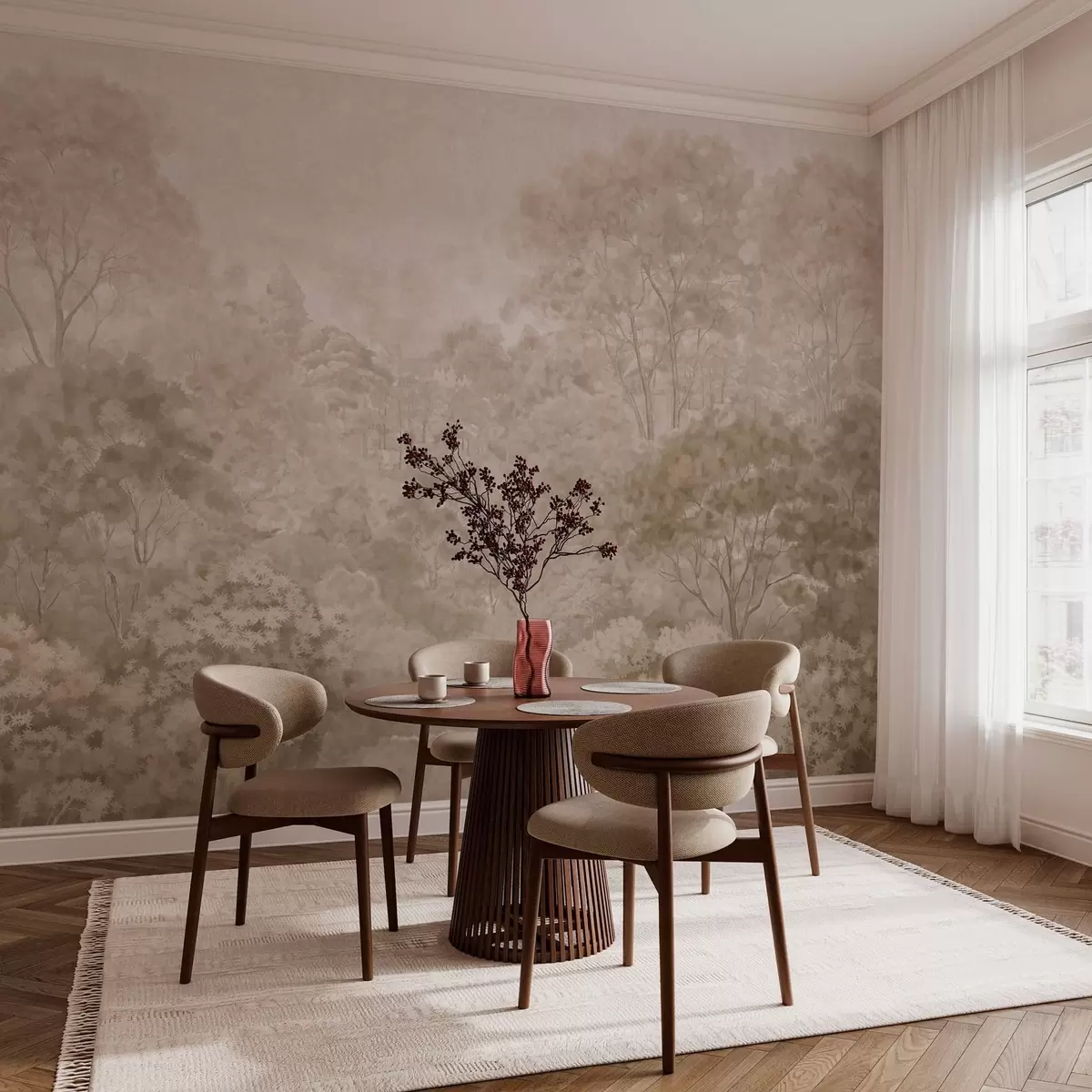 Wall Mural Photo Wallpaper Vintage forest landscape in warm beige tones Nr. w05433v1