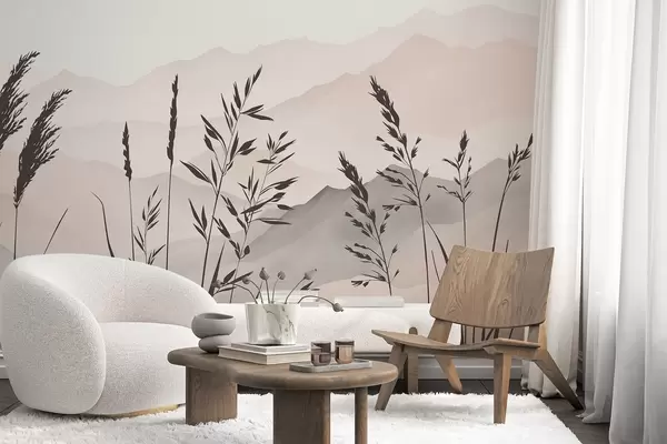 Wall Mural Photo Wallpaper Silhouettes of grass against the backdrop of mountains Nr. w05501