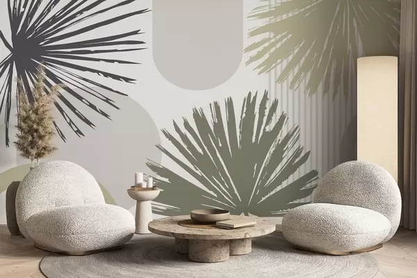 Wall Mural Photo Wallpaper Abstraction with plant and geometric silhouettes Nr. w05505v2
