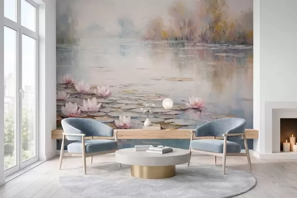 Wall Mural Photo Wallpaper Impressionism lake with water lilies and soft light Nr. w05515