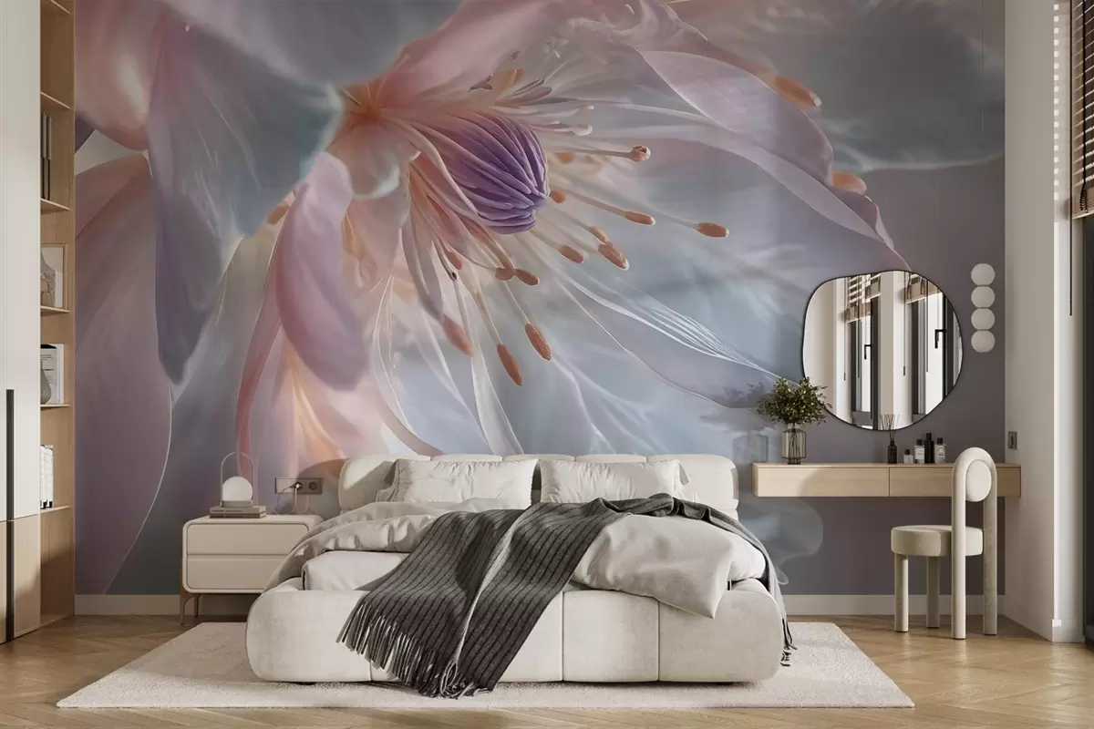 Wall Mural Photo Wallpaper A close-up of a delicate, pastel-colored flower with soft, translucent petals and a vibrant center Nr. w08605
