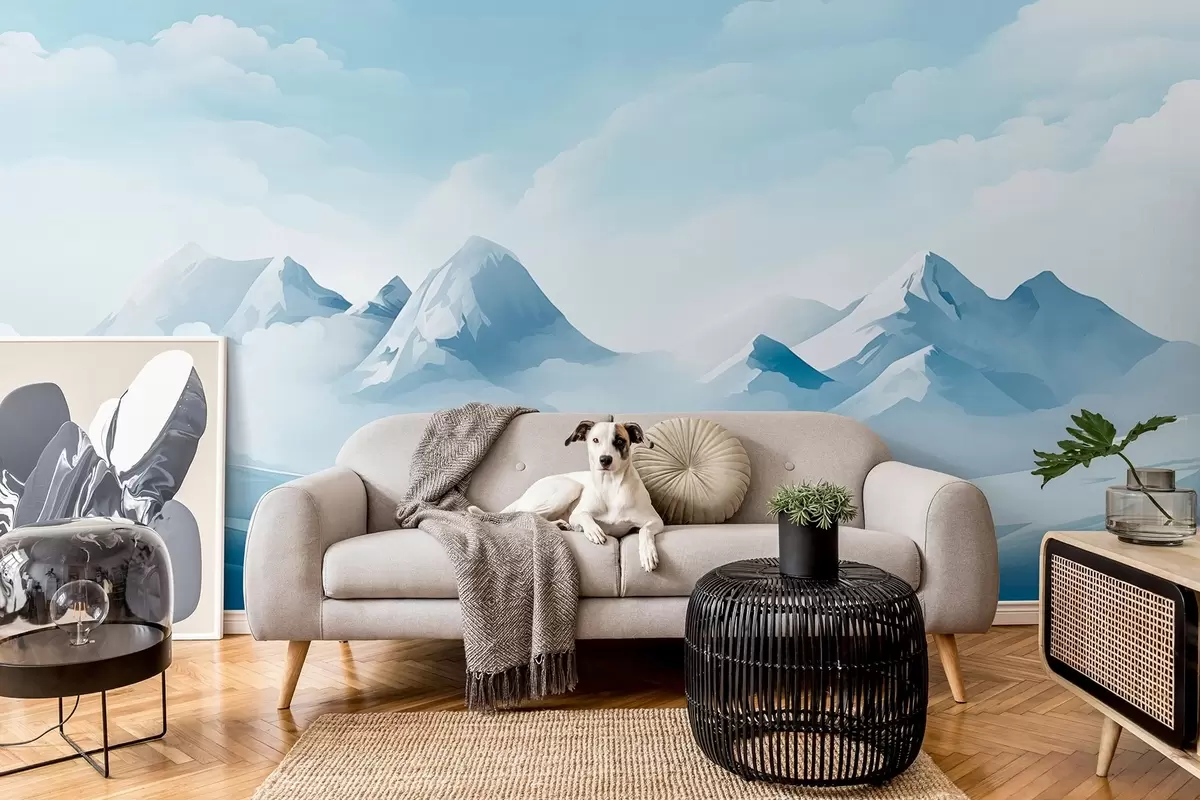 Wall Mural Photo Wallpaper Minimalistic blue clouds and mountains, icy weather Nr. w08811