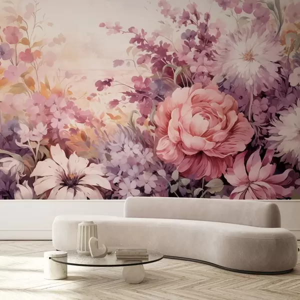 Wall Mural Photo Wallpaper Colorful flowers in pink and purple tones: lilacs, peonies, chrysanthemums Nr. w09039