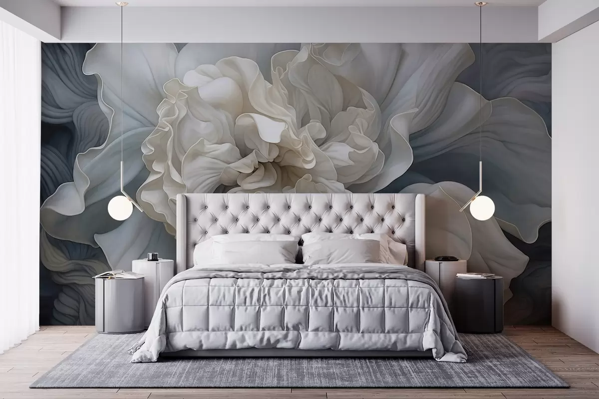 Wall Mural Photo Wallpaper Abstract large decorative flower with many petals, soft and delicate, with blue and gray shades in the background Nr. w09055