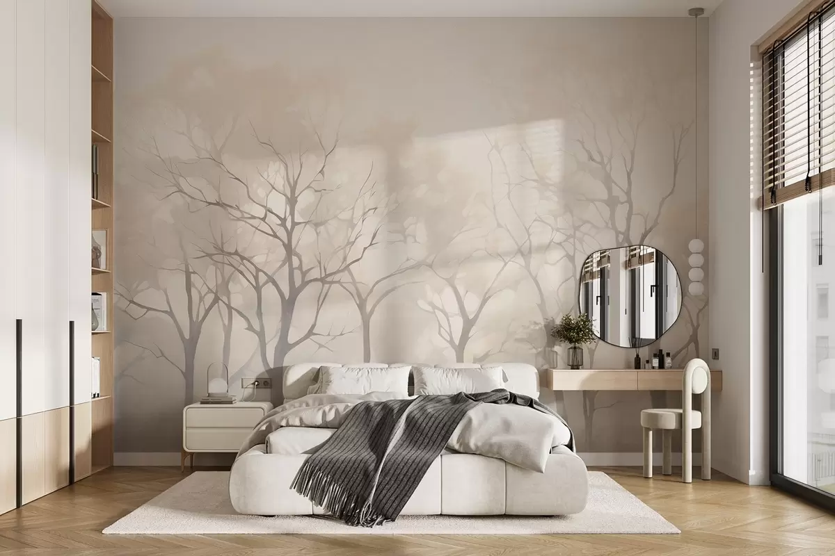 Wall Mural Photo Wallpaper Monochrome vintage trees in fog Nr. w09065
