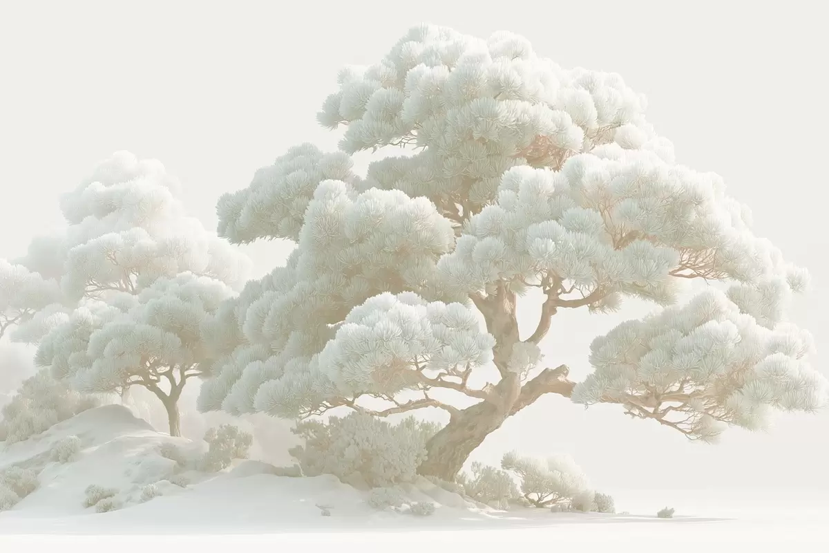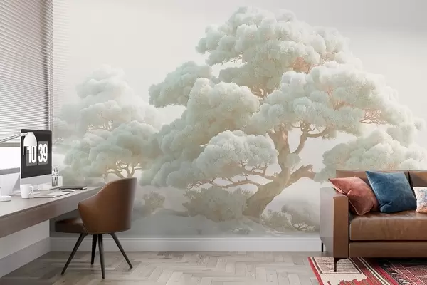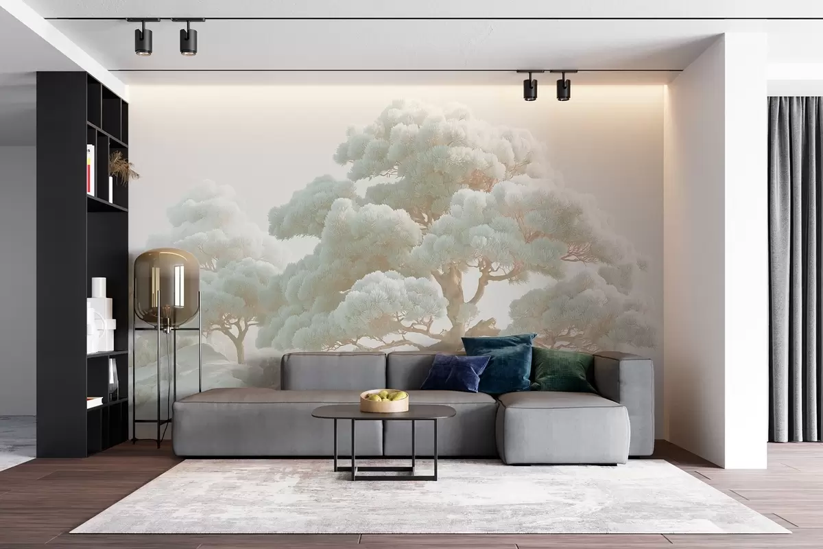 Wall Mural Photo Wallpaper Pine trees in the mist in soft tones standing in a forest Nr. w09122
