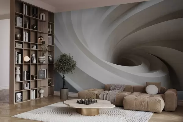 Wall Mural Photo Wallpaper Abstract textured swirl of white and beige layers, creating a vortex effect, dynamic composition, modern minimalist design Nr. w09144
