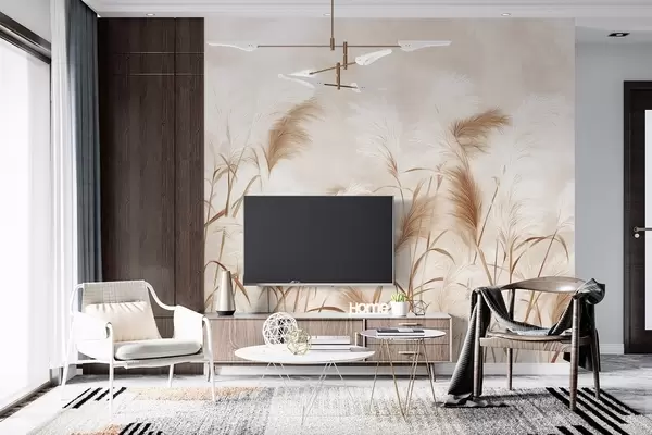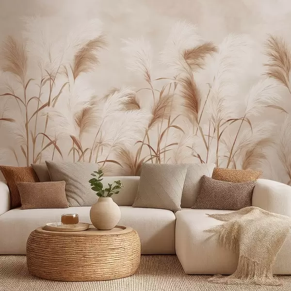 Wall Mural Photo Wallpaper Elegant pampas grass blooms in soft beige and milky tones Nr. w09150v1