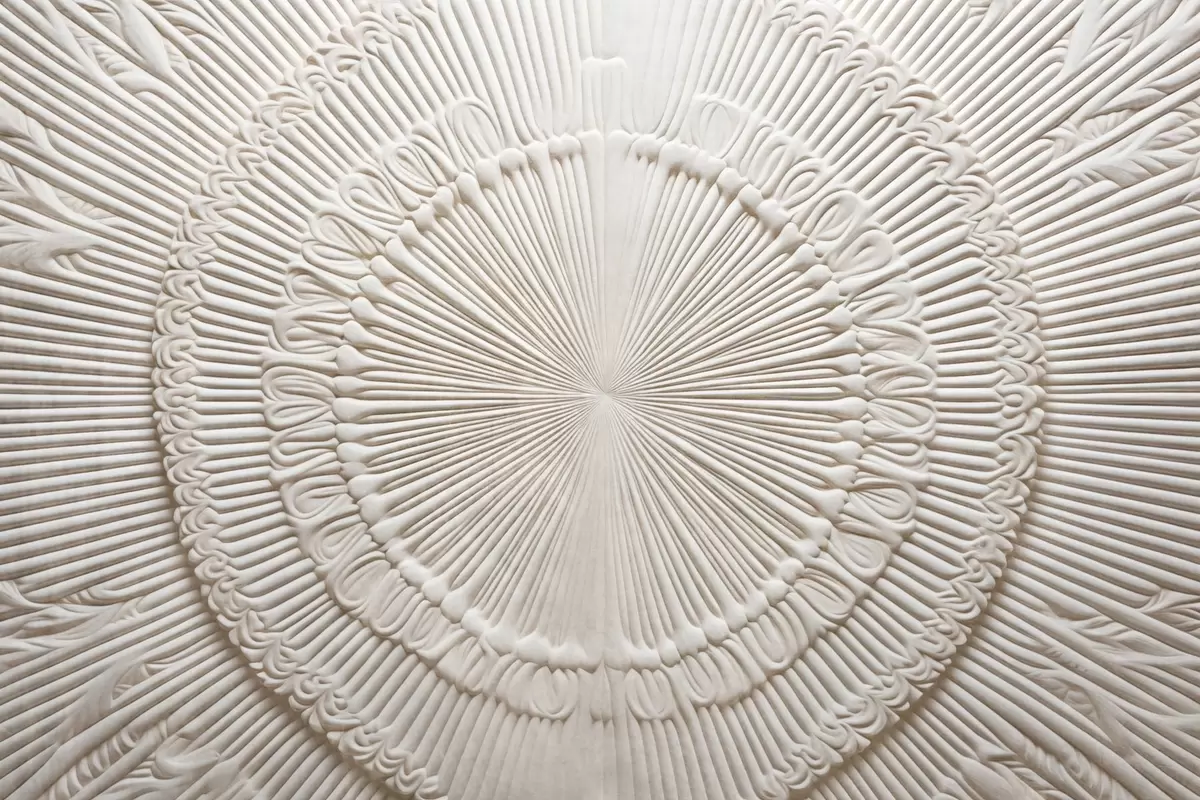 Wall Mural Photo Wallpaper Abstract textured circular print with radial lines and decorative elements, symmetrical design, relief texture Nr. w09154