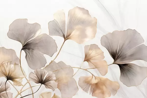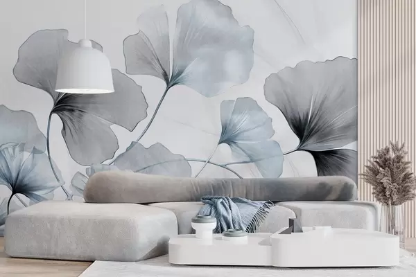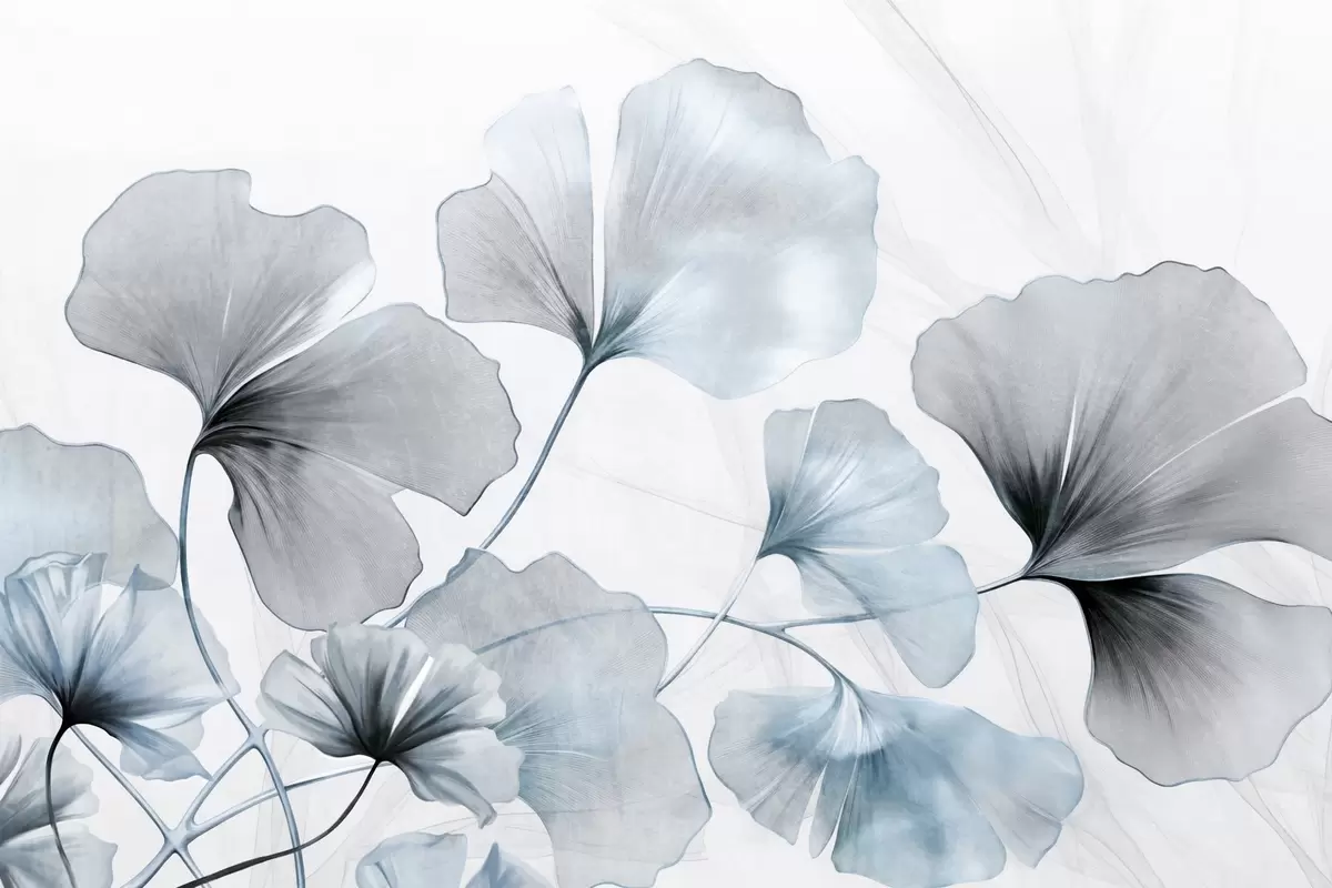 Wall Mural Photo Wallpaper Ginkgo biloba leaves in muted blue and gray tones, delicate textured watercolor effect, light background Nr. w09215v1