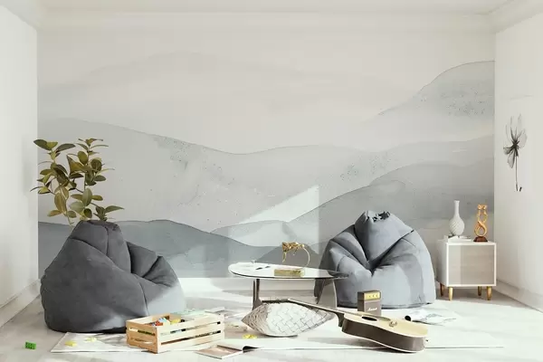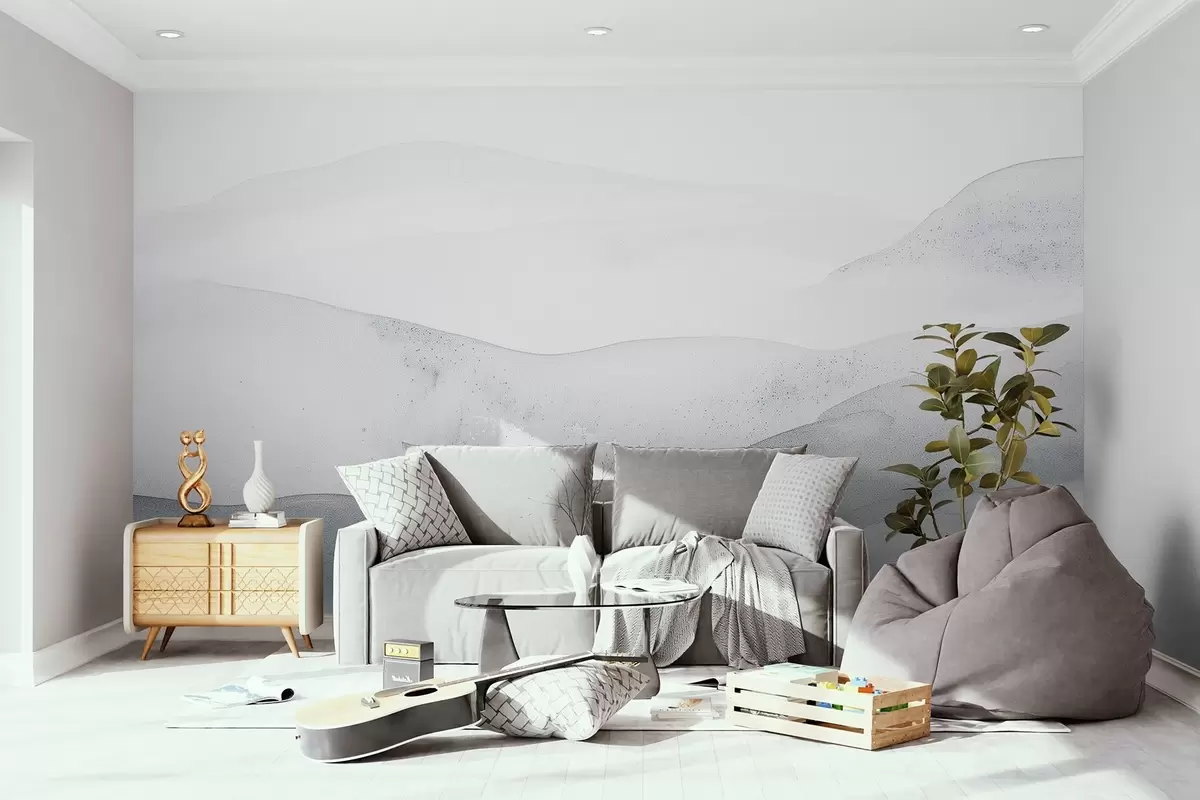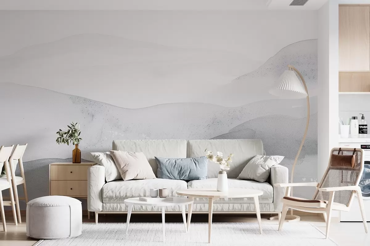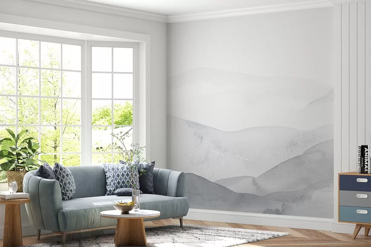 Wall Mural Photo Wallpaper Minimalist misty mountains in soft blue shades Nr. w09223v2
