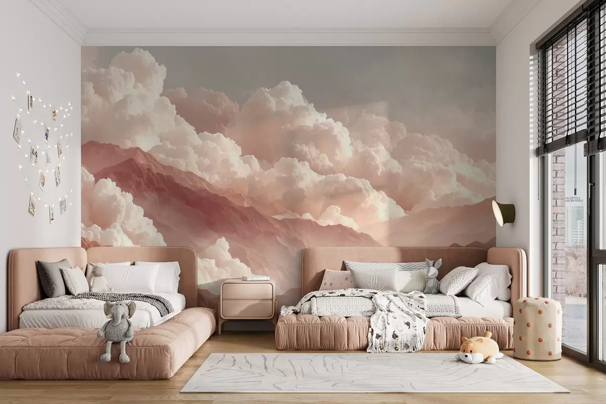 Wall Mural Photo Wallpaper Warm sunrise over mountains with fluffy clouds Nr. w09226