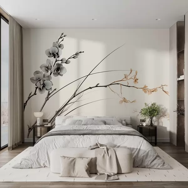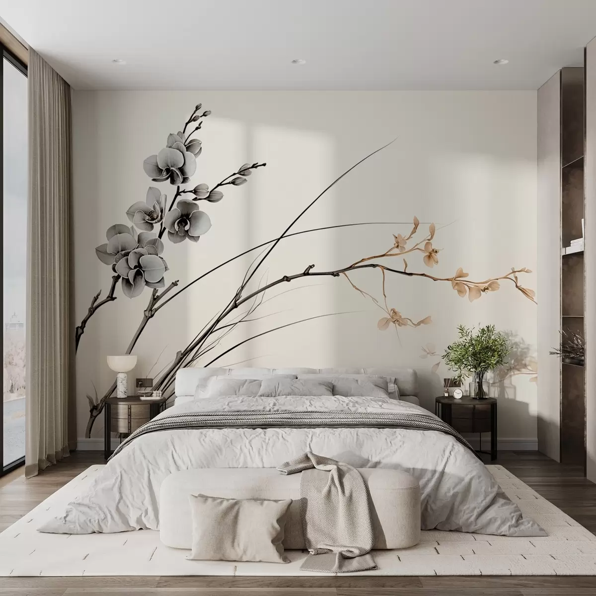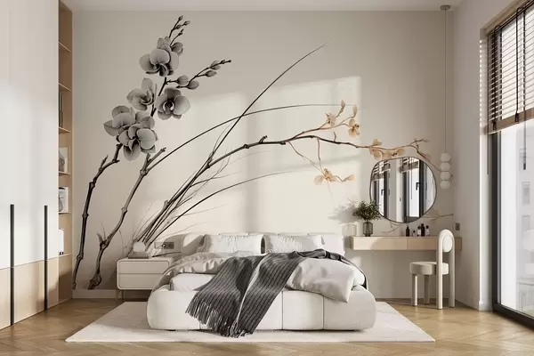 Wall Mural Photo Wallpaper Minimalist orchid branch in soft sepia and gray tones Nr. w09250