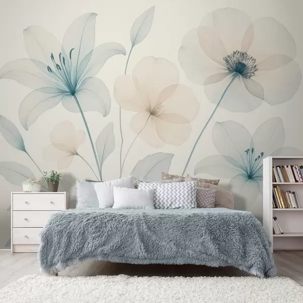 Wall Mural Photo Wallpaper Delicate flowers in pastel blue and cream watercolor style Nr. w09287