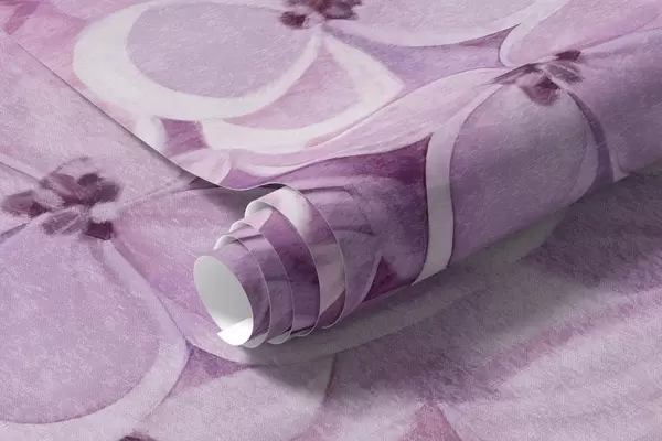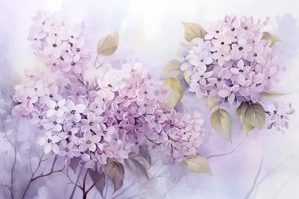 Wall Mural Photo Wallpaper Lilac textured flowers with light purple petals, light green leaves, watercolor style, soft, pastel colors, delicate brushstrokes Nr. w09291