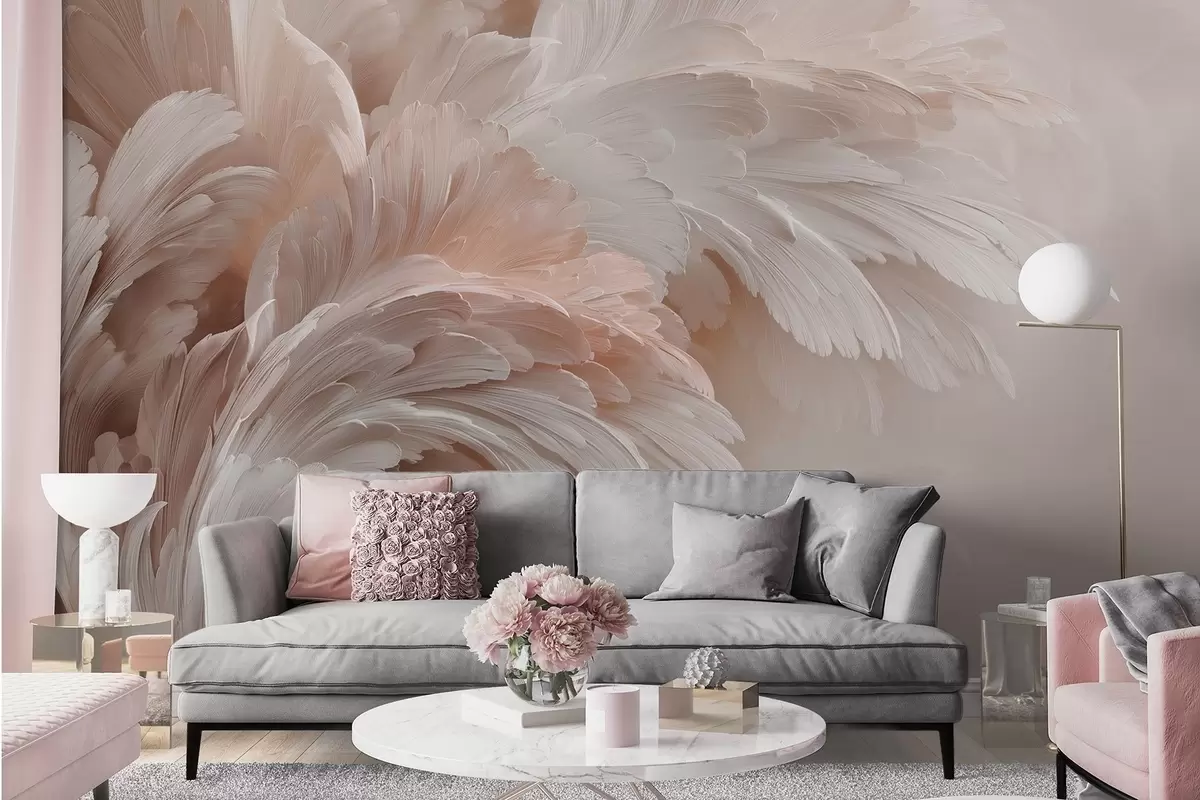 Wall Mural Photo Wallpaper Airy feathers and petals in creamy pink shades Nr. w09301