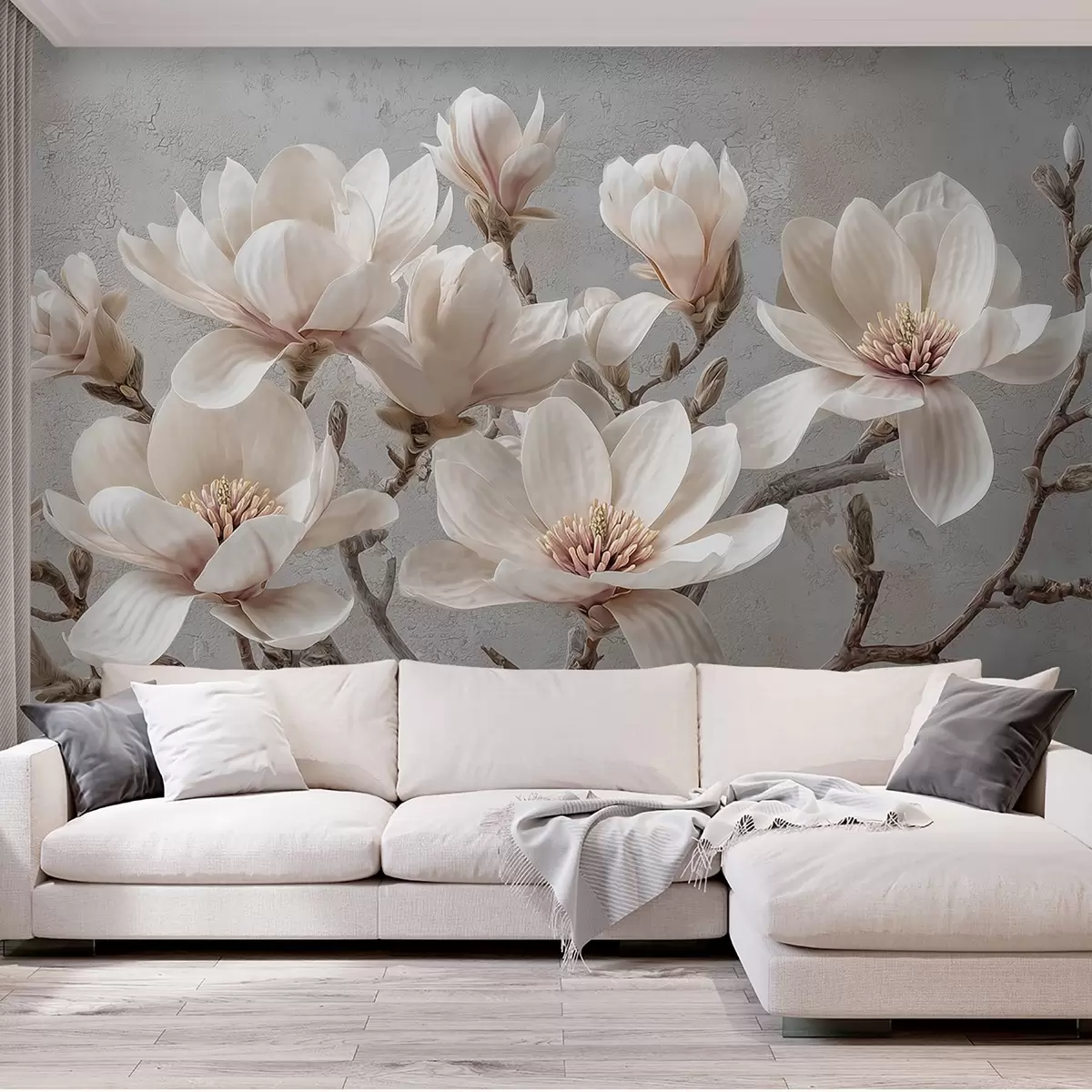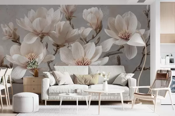 Wall Mural Photo Wallpaper Magnolia branches with large light flowers in muted tones Nr. w09305