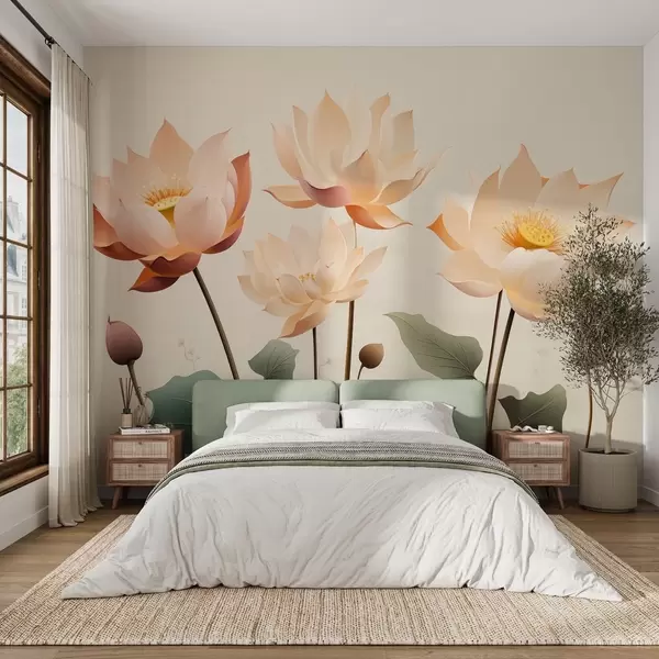 Wall Mural Photo Wallpaper Elegant lotus flowers in a gentle pastel palette Nr. w09306