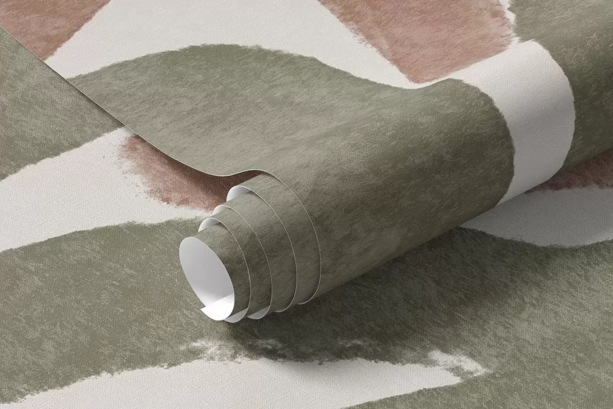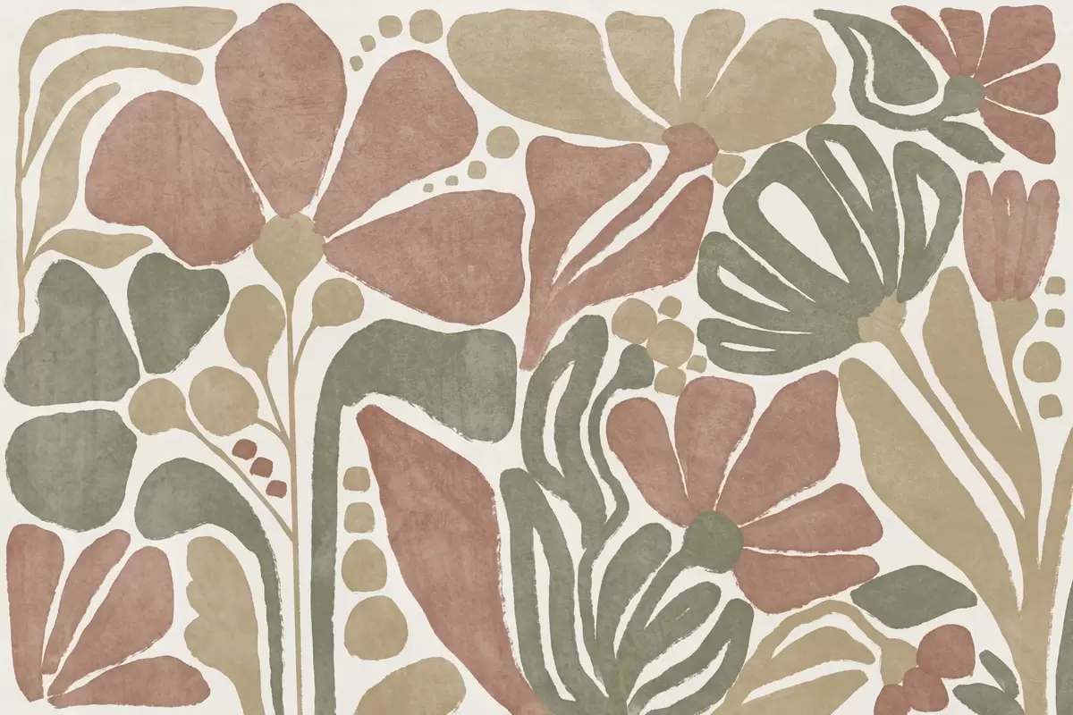 Wall Mural Photo Wallpaper Abstract flowers in shades of red, green , and beige, with a light background, in a flat , stylized modern minimalist design Nr. w09315