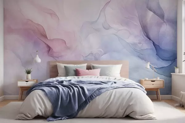 Wall Mural Photo Wallpaper Abstract textured painting with flowing pastel shades of pink, purple and blue creating a soft effect Nr. w09318