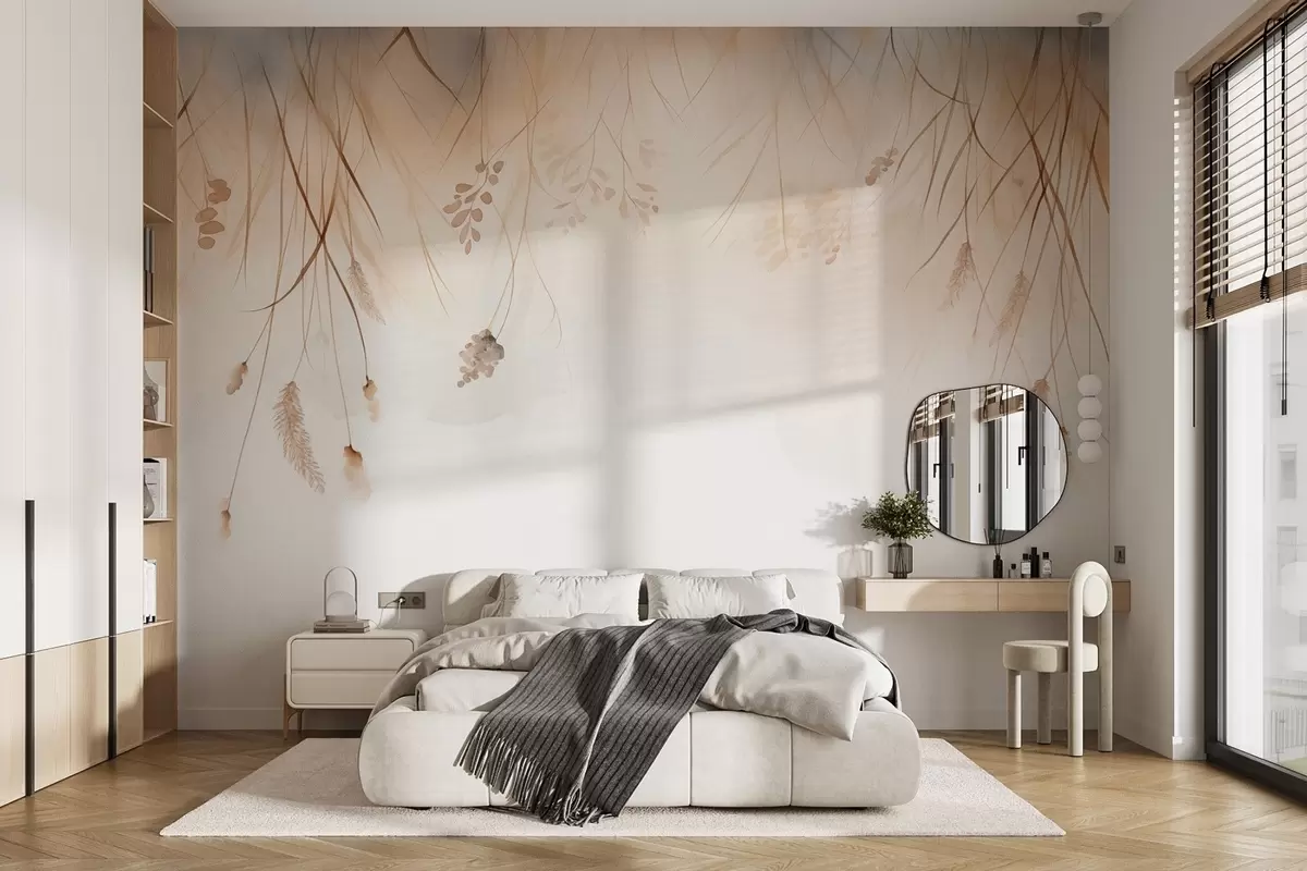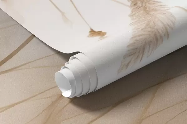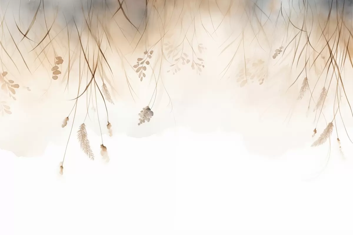 Wall Mural Photo Wallpaper Drooping cattails and grain ears in mist in soft beige and brown shades Nr. w09328