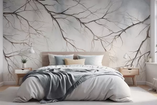 Wall Mural Photo Wallpaper Tree branches with a watercolor textured effect , intricate details, soft color palette, against a light background w09337