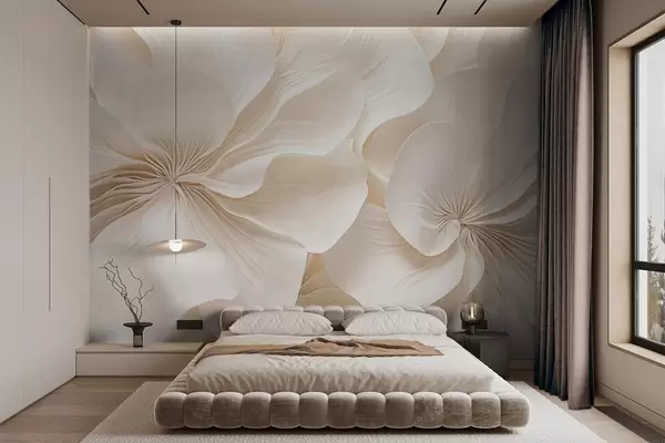 Wall Mural Photo Wallpaper Close-up of creamy textured flowers with delicate, flowing petals, creating a soft, elegant, and textured floral arrangement Nr. w09346