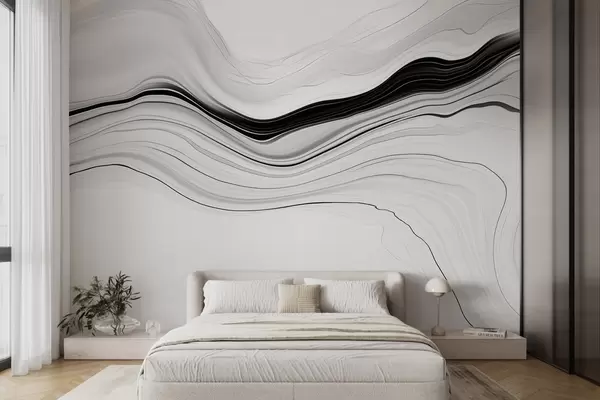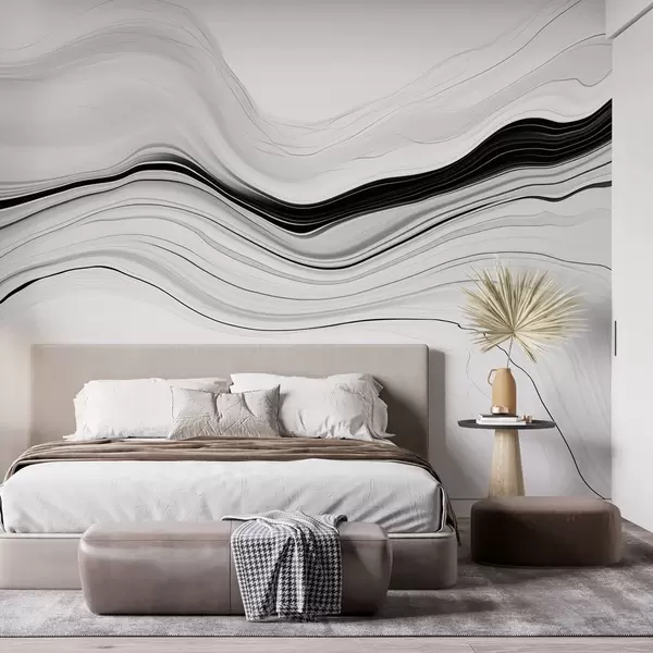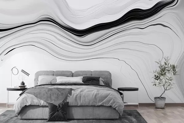 Wall Mural Photo Wallpaper Black and white pattern with the effect of marble layers Nr. w09358