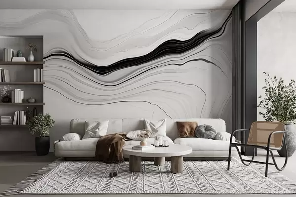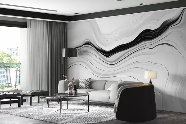 Wall Mural Photo Wallpaper Black and white pattern with the effect of marble layers Nr. w09358