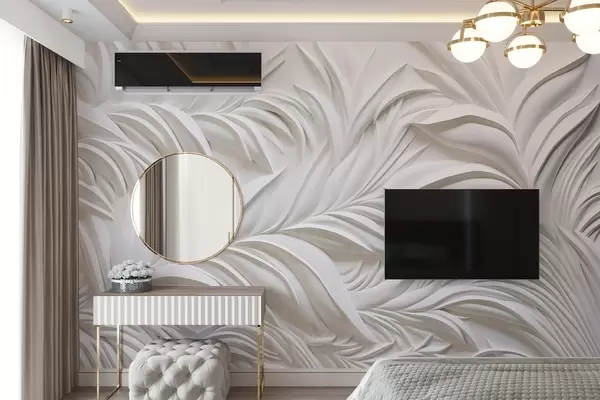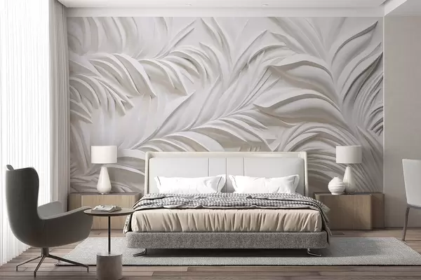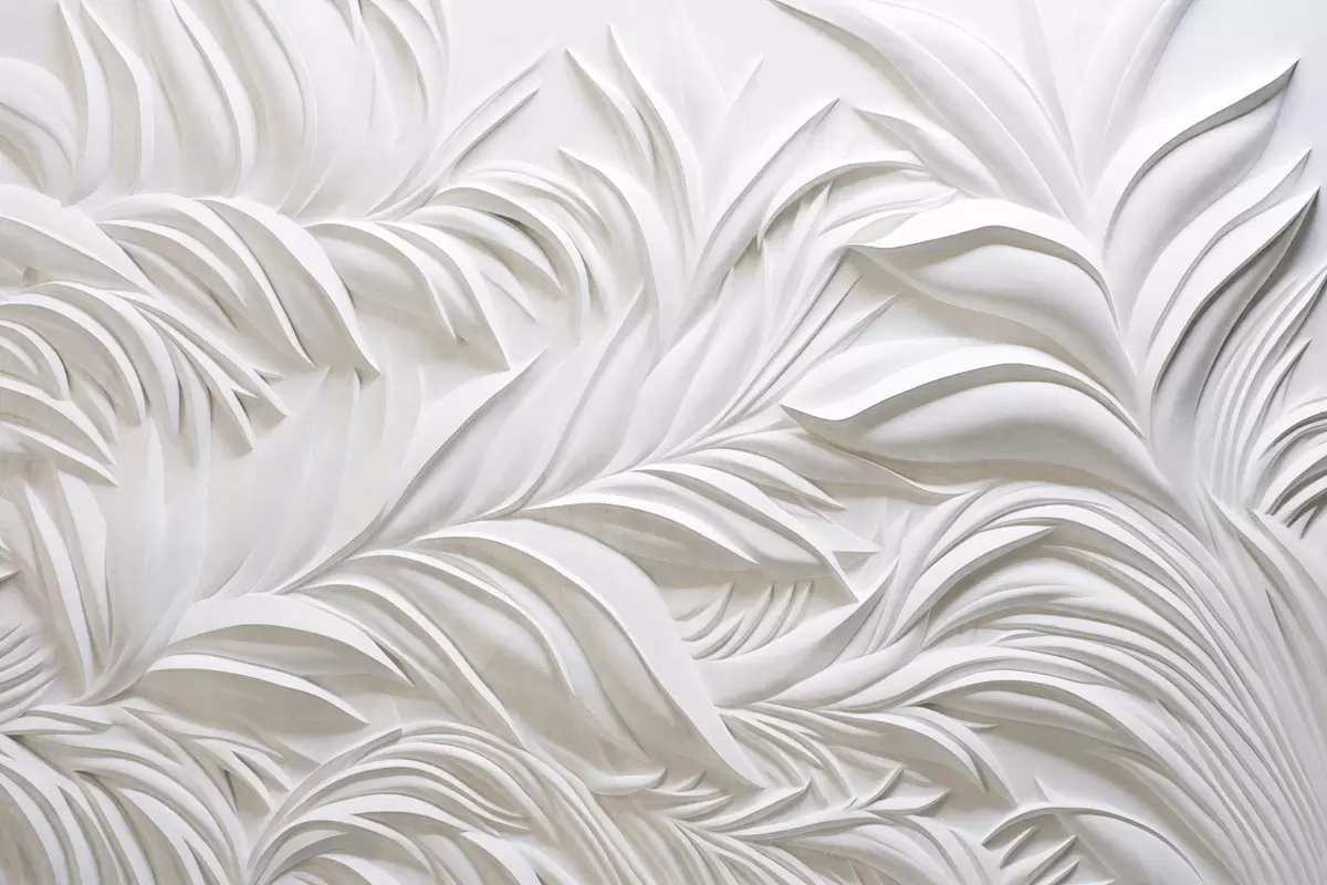 Wall Mural Photo Wallpaper Abstract textured white leaves and floral elements, minimalist aesthetic Nr. w09378
