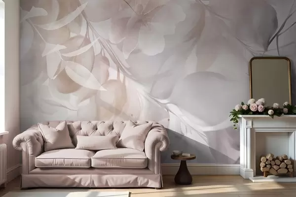 Wall Mural Photo Wallpaper Floral art with muted beige and brown flowers, leaves and branches, soft pastel colors, watercolor textured effect w09397