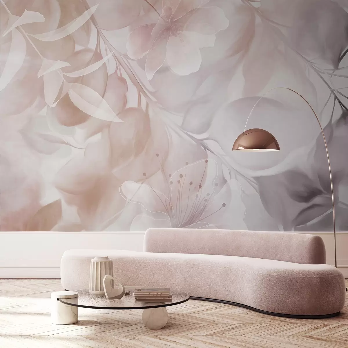 Wall Mural Photo Wallpaper Floral art with muted beige and brown flowers, leaves and branches, soft pastel colors, watercolor textured effect Nr. w09397