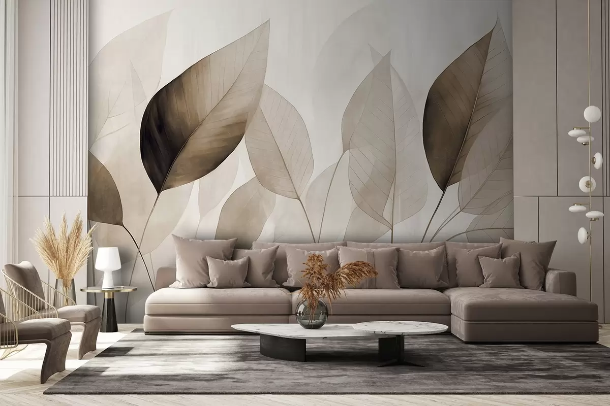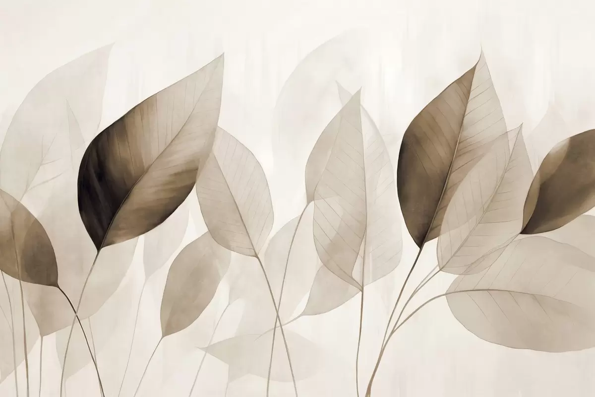 Wall Mural Photo Wallpaper Textured painting imitation of leaves in shades of brown and beige with delicate veins and stems Nr. w09400v1
