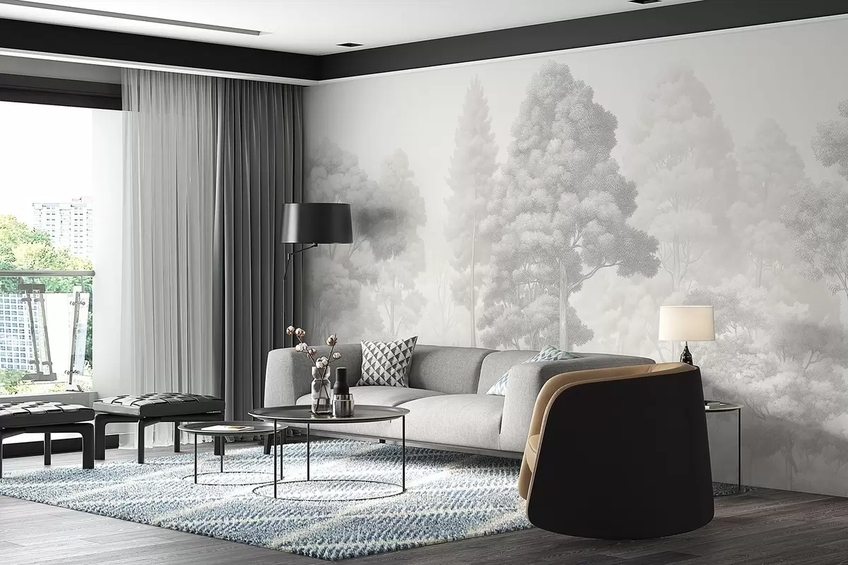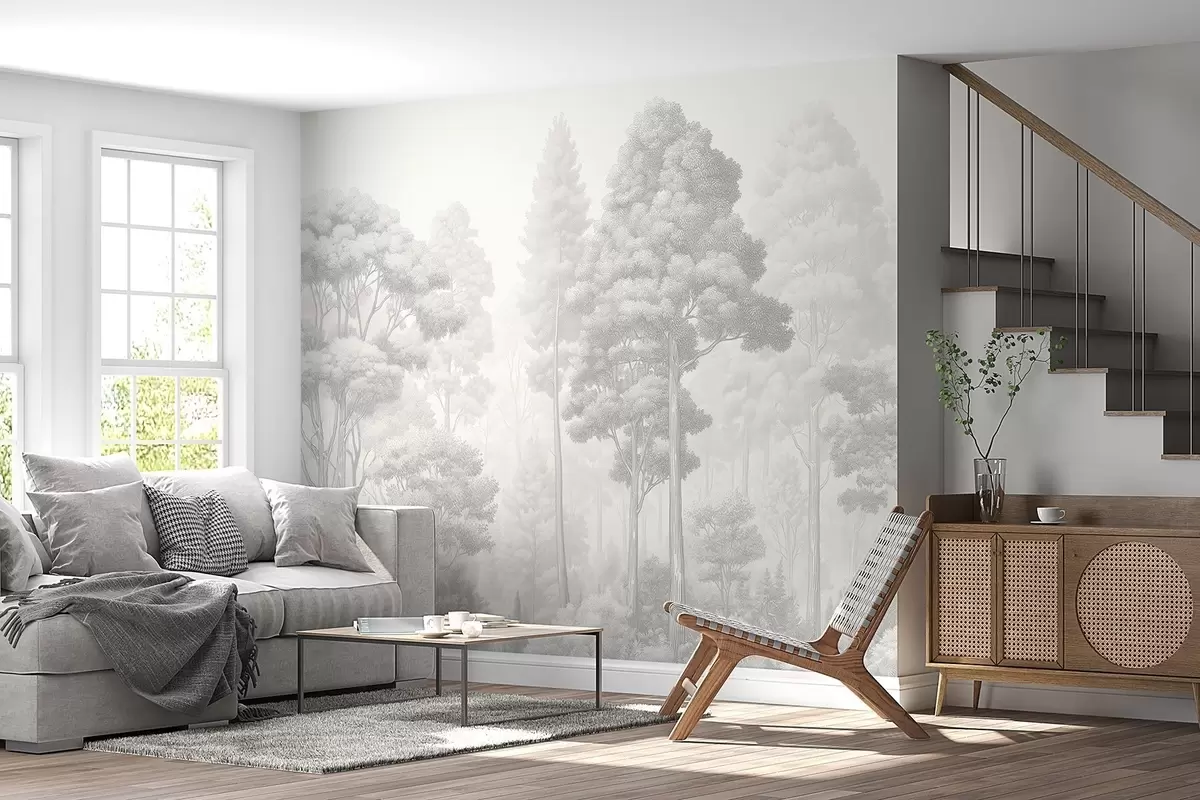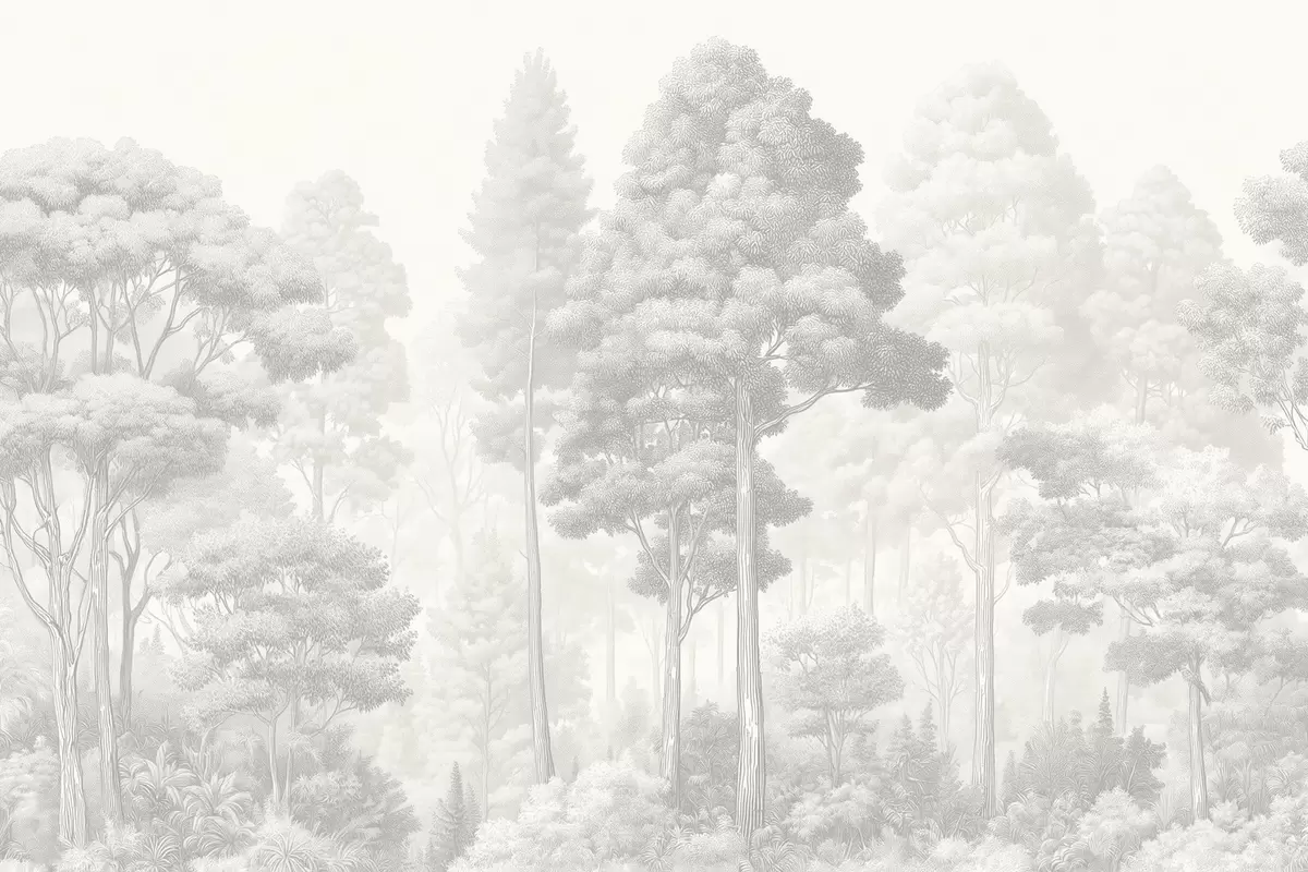 Wall Mural Photo Wallpaper Artistic forest landscape in the technique of black-and-white graphic hatching Nr. w09411