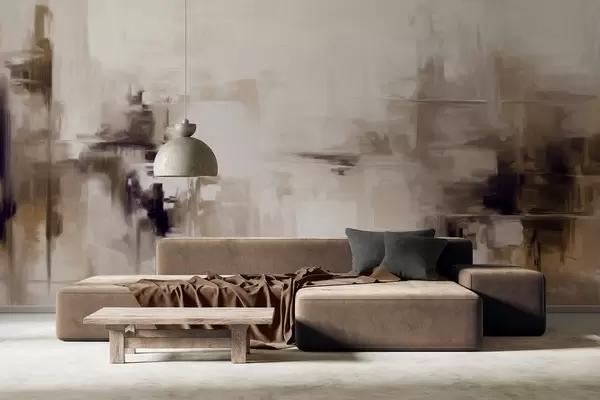 Wall Mural Photo Wallpaper Abstract textured landscape painting imitation with brown and white brushstrokes, modern style w09422v1