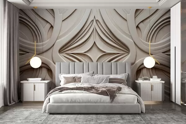 Wall Mural Photo Wallpaper Abstract symmetrical textured geometric print, light beige color, art deco style , intricate details Nr. w09473