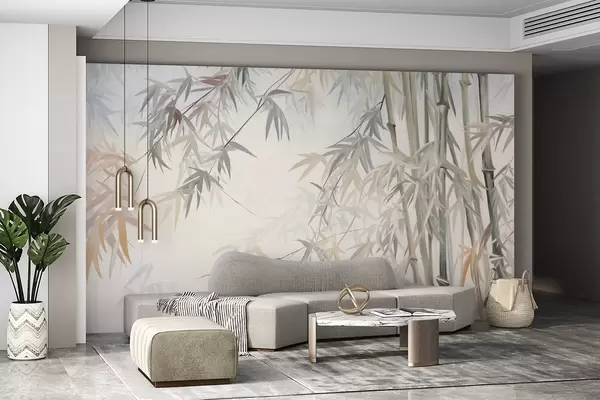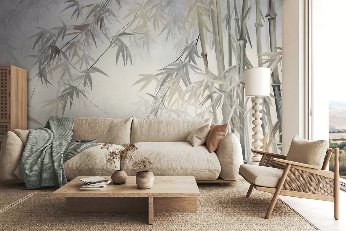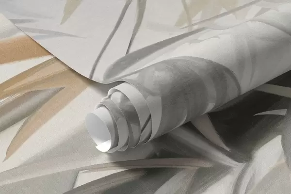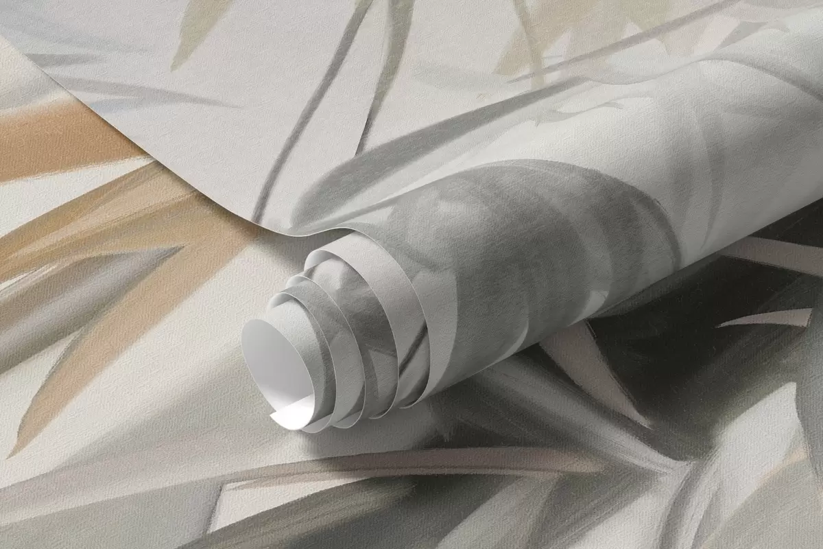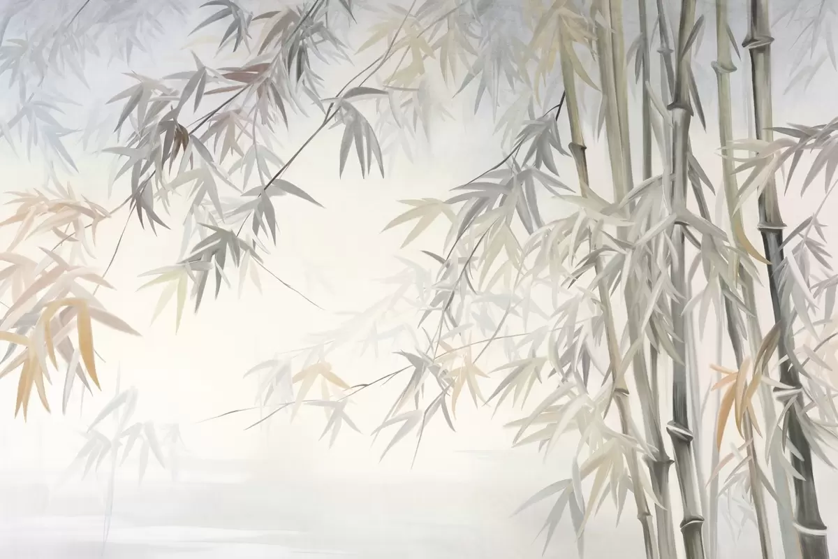 Wall Mural Photo Wallpaper Textured bamboo stems and leaves in a soft, muted color palette of gray, white and cream, minimalist composition Nr. w09485