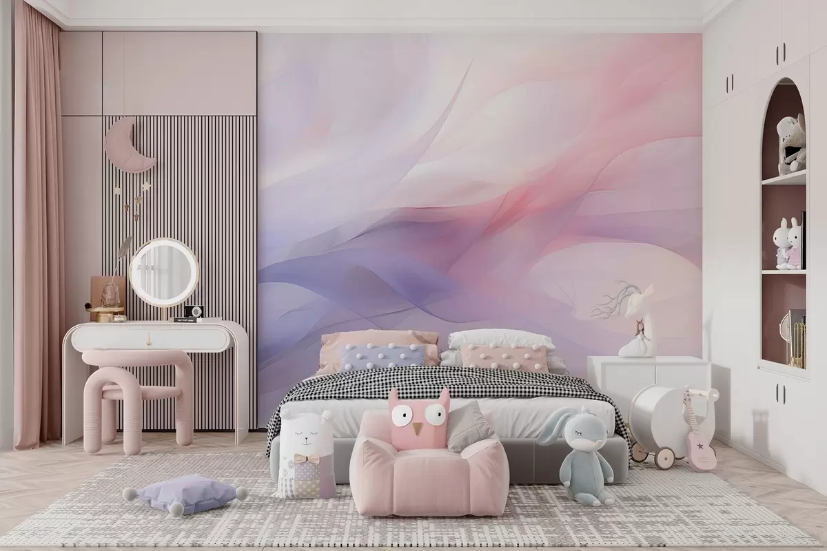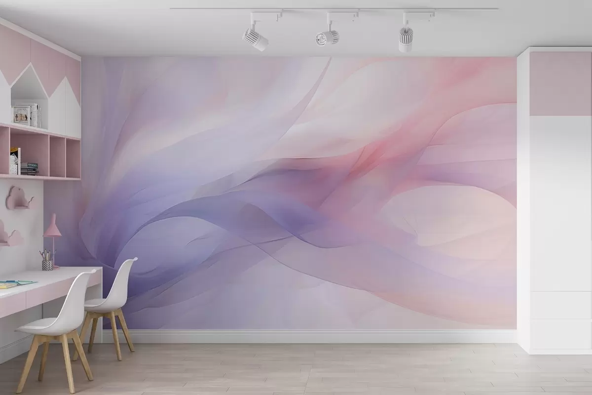 Wall Mural Photo Wallpaper Soft abstract waves in blue and pink tones Nr. w09508