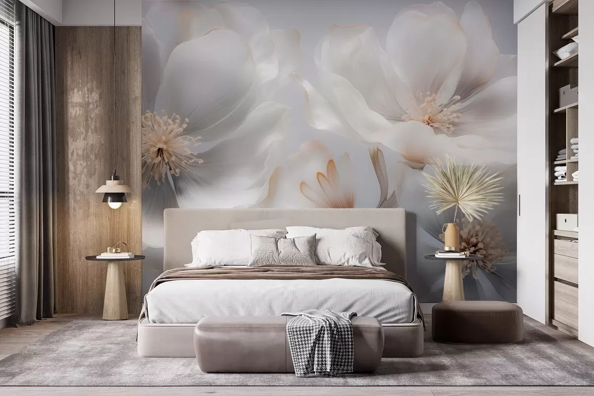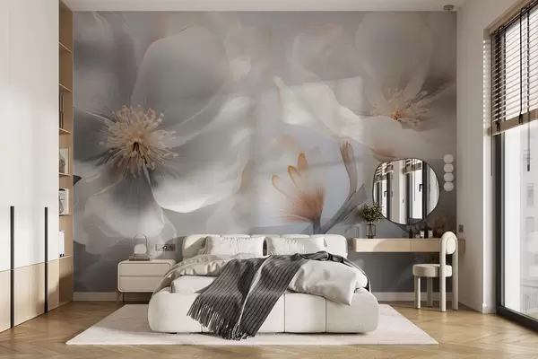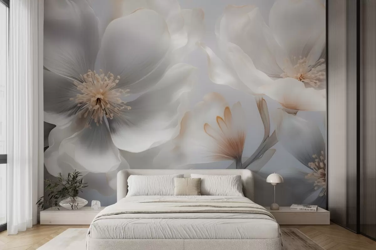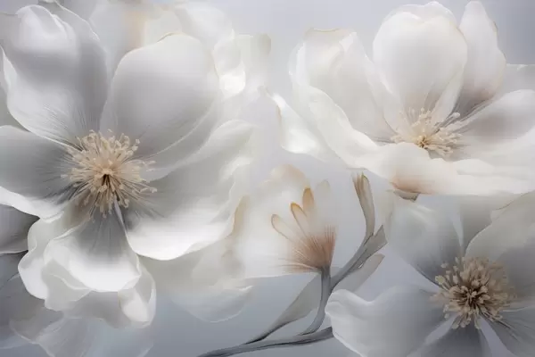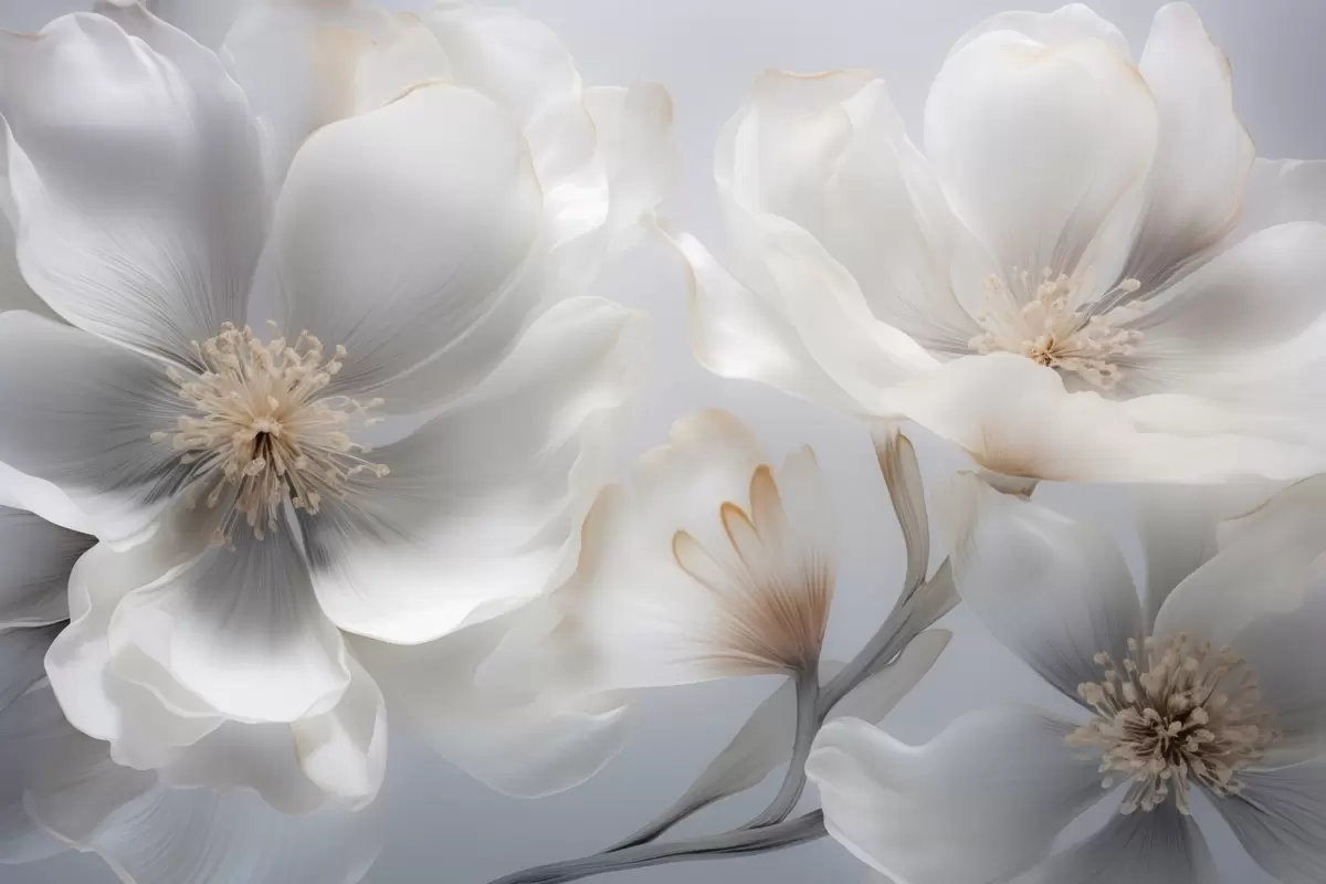 Wall Mural Photo Wallpaper Pearlescent flowers in beige-gray and milky-cream hues Nr. w09527