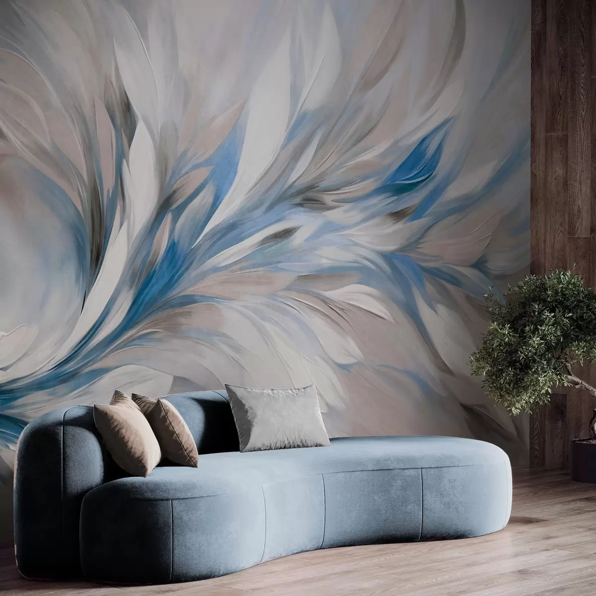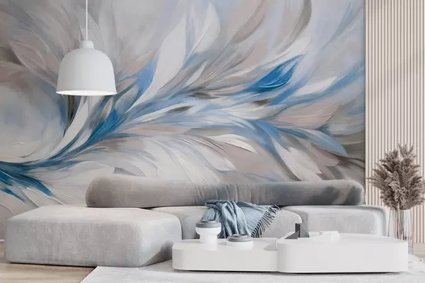 Wall Mural Photo Wallpaper Abstract painting style with white, blue and gray textured brushstrokes with a soft, light background Nr. w09552v1