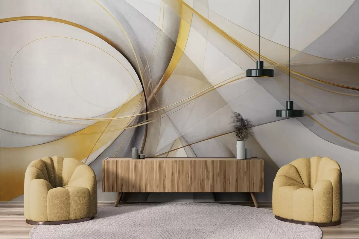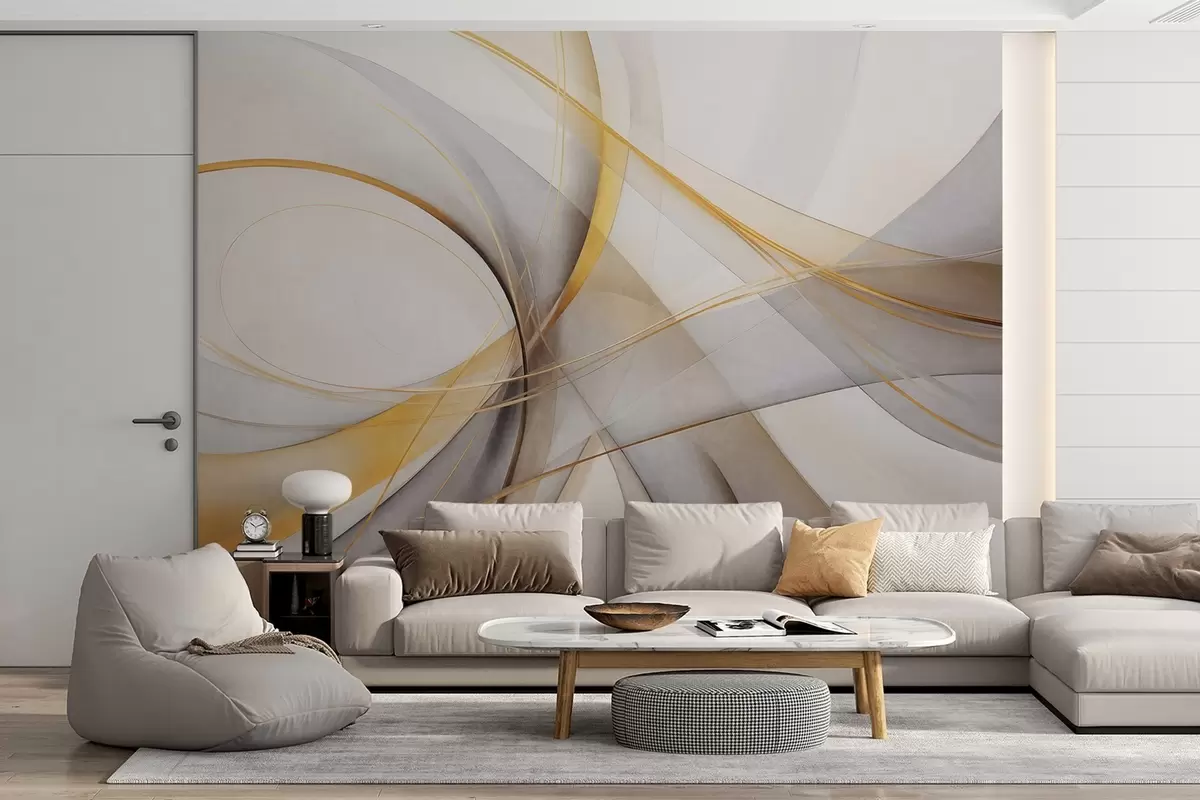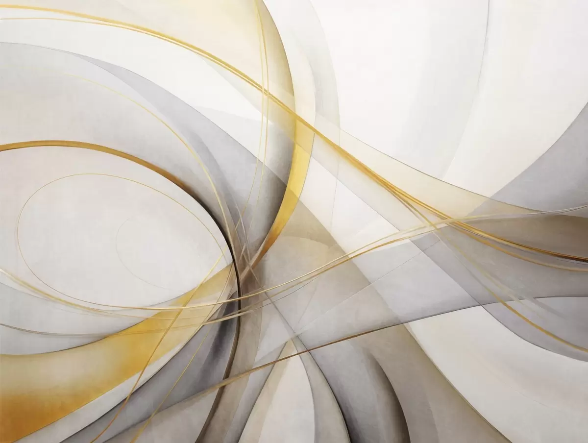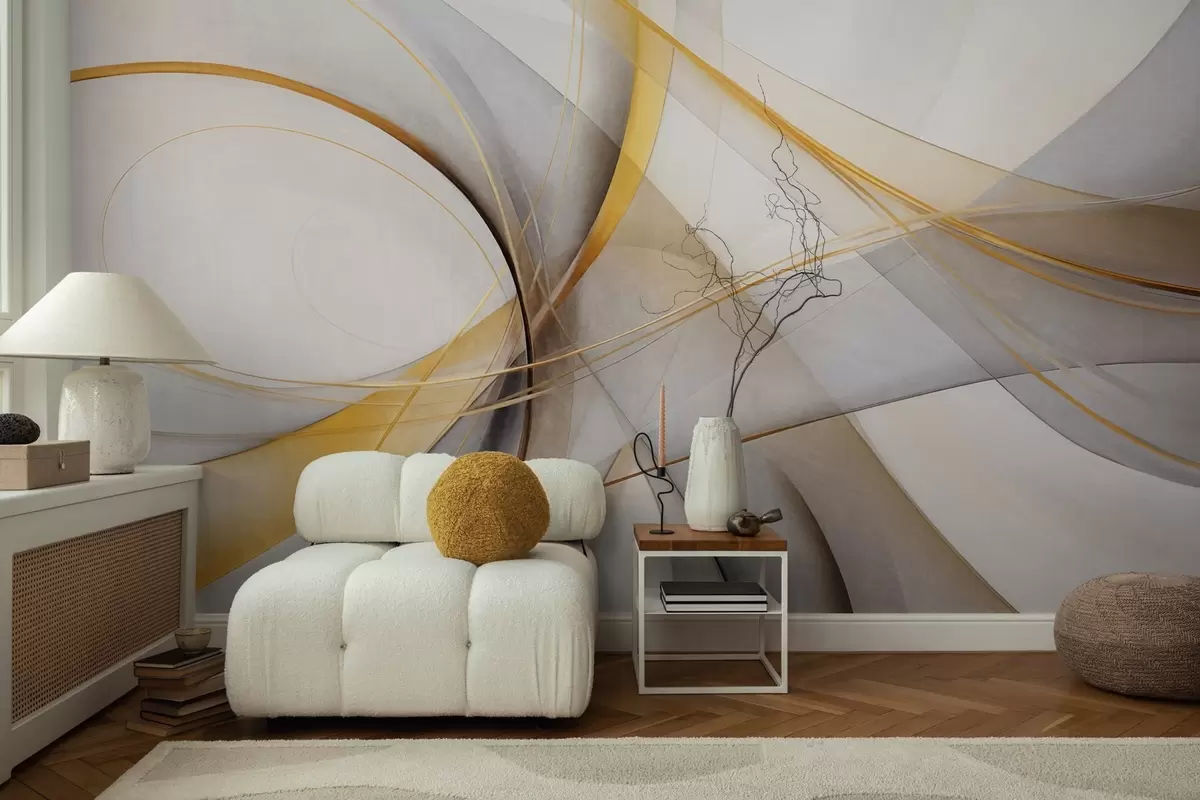 Wall Mural Photo Wallpaper Abstract flowing lines in yellow and white on a gray background, with a sense of movement and depth, modern art Nr. w09587