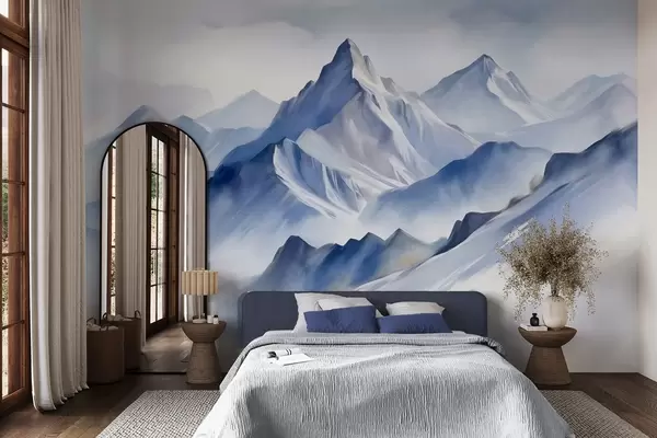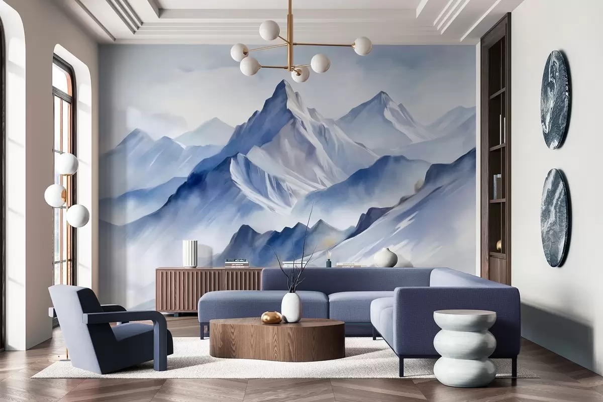 Wall Mural Photo Wallpaper Textured snowy mountains with a soft, watercolor effect and a palette of blue and white Nr. w09630