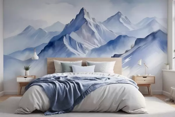 Wall Mural Photo Wallpaper Textured snowy mountains with a soft, watercolor effect and a palette of blue and white Nr. w09630