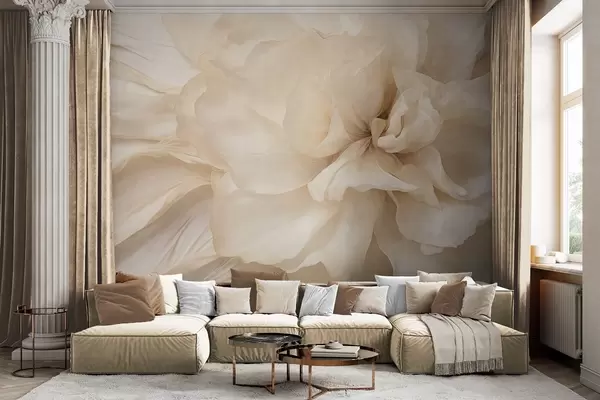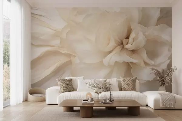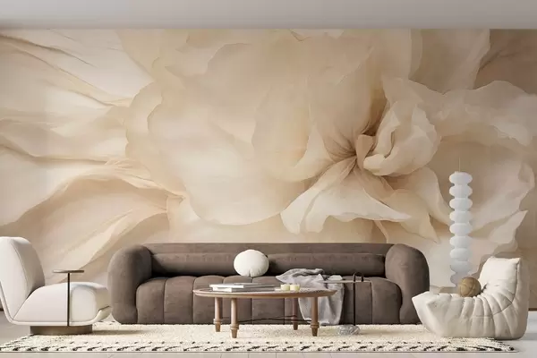 Wall Mural Photo Wallpaper Textured delicate, light-colored flower with translucent petals, soft abstract background w09632