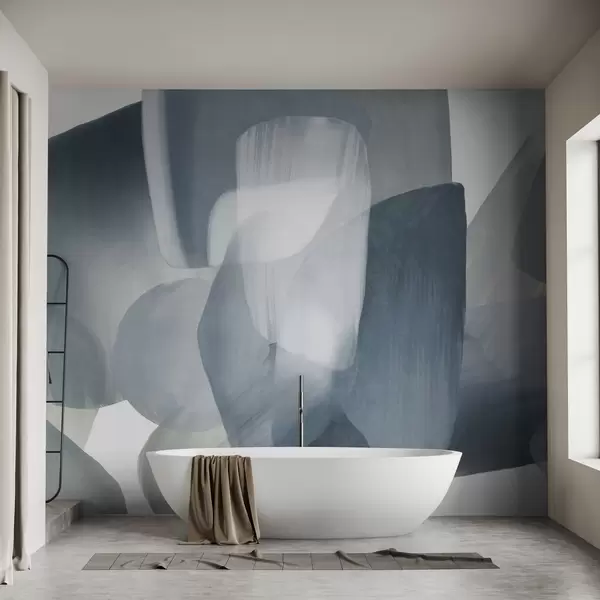 Wall Mural Photo Wallpaper Abstract texrured shapes in muted blue and gray colors, with soft edges and overlapping layers Nr. w09642v1
