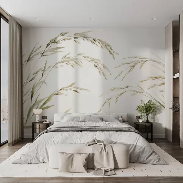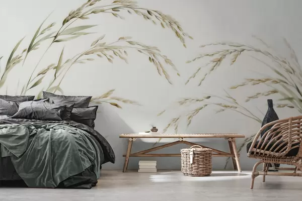 Wall Mural Photo Wallpaper Delicate cereal grasses in pastel tones with a soft watercolor effect Nr. w09712