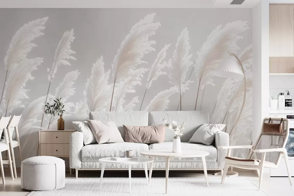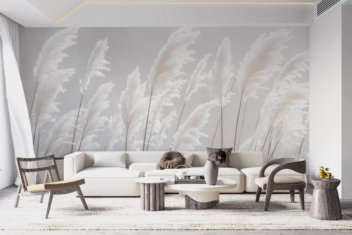 Wall Mural Photo Wallpaper Soft white pampas grass in gentle morning light Nr. w09717