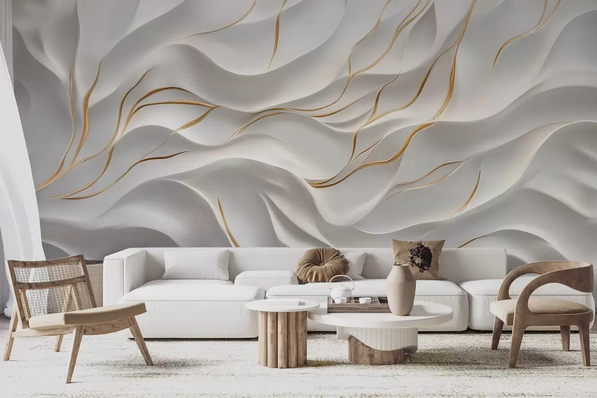 Wall Mural Photo Wallpaper Gray embossed waves with yellow accents Nr. w09724