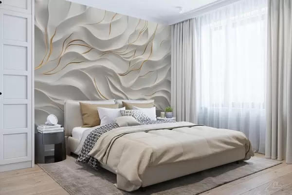 Wall Mural Photo Wallpaper Gray embossed waves with yellow accents Nr. w09724