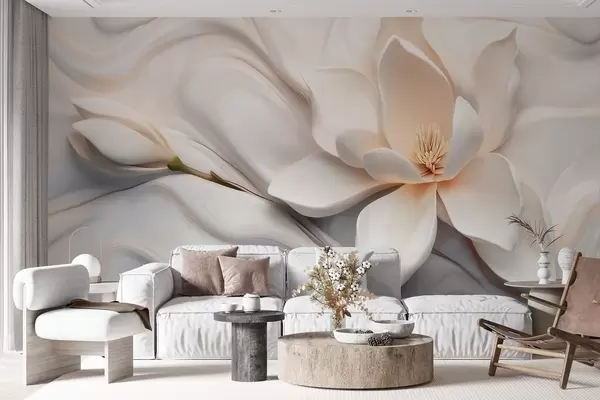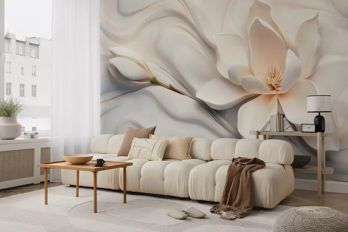 Wall Mural Photo Wallpaper Three-dimensional white magnolia with marble texture imitation in relief Nr. w09729